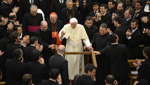 Shortly before the announcement of Pope Benedict XVI's resignation, on 8 February 2013, he gave a deeply Roman, Petrine, lesson in his meeting with the seminarians of Rome in the chapel of the Pontifical Roman Seminary (photo above from that meeting). Three days later, in a morning meeting with his cardinals, he announced his decision to step down from the papacy.